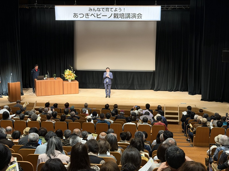 本講演会は、厚木市が農産物特産品としてブランド化を進めているペピーノについて、より多くの市民の皆さまに知っていただくことを目的に、厚木市とペピーノプロジェクトが協力して開催したものです。