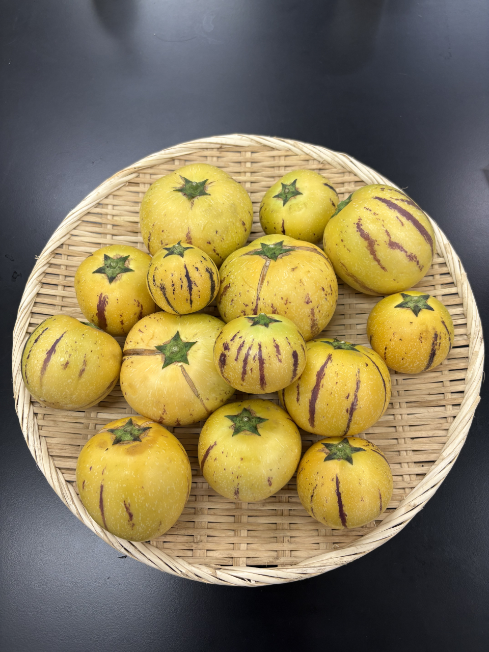 鮮やかな黄色に紫色の縞模様の入ったペピーノです!